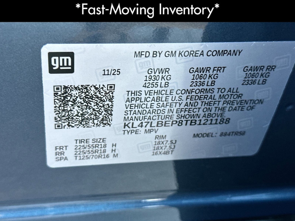 Convenience I Package (2-Way Power Driver Lumbar Control, 8-Way Power Driver Seat Adjuster, Front Doors Keyless Open, Heated Driver and Front Passenger Seats, and Heated Steering Wheel), Preferred Equipment Group G03, 2 USB Ports (1 Type-A, 1 Type-C), 3 Years SiriusXM, 3.50 Final Drive Axle Ratio, 4-Way Manual Front Passenger Seat Adjuster, 4-Wheel Disc Brakes, 6 Speakers, 6-Way Manual Driver Seat Adjuster, ABS brakes, Air Conditioning, Alloy wheels, AM/FM radio: SiriusXM, Auto High-beam Headlights, Automatic temperature control, Brake assist, Bumpers: body-color, Compass, Delay-off headlights, Driver door bin, Driver vanity mirror, Dual front impact airbags, Dual front side impact airbags, Electronic Stability Control, Emergency communication system: OnStar, Exterior Parking Camera Rear, Front anti-roll bar, Front Bucket Seats, Front Center Armrest, Front License Plate Bracket, Front reading lights, Front wheel independent suspension, Fully automatic headlights, Heated door mirrors, Illuminated entry, Leatherette Seat Trim, Low tire pressure warning, Occupant sensing airbag, Outside temperature display, Overhead airbag, Overhead console, Panic alarm, Passenger door bin, Passenger vanity mirror, Power door mirrors, Power steering, Power windows, Premium 6-Speaker Audio System Feature, Radio data system, Radio: AM/FM Stereo Audio System, Rear Parking Sensors, Rear window defroster, Remote keyless entry, Security system, SiriusXM Trial Subscription, Speed control, Split folding rear seat, Steering wheel mounted audio controls, Tachometer, Telescoping steering wheel, Tilt steering wheel, Traction control, Trip computer, Turn signal indicator mirrors, Variably intermittent wipers, Wheels: 18 Black Painted Aluminum, and Wireless Apple CarPlay/Wireless Android Auto. Price after all Rebates. Price does not include Tax, Title, Registration, Document Fees. Customer must qualify for rebate. See Dealer for Details. Customer may qualify for additional rebates. $750 - Buick GMC Bonus Cash. Exp. 03/31/2026