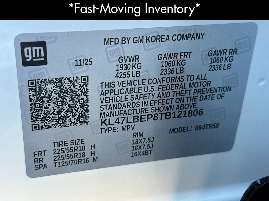 Convenience I Package (2-Way Power Driver Lumbar Control, 8-Way Power Driver Seat Adjuster, Front Doors Keyless Open, Heated Driver and Front Passenger Seats, and Heated Steering Wheel), Preferred Equipment Group G03, 2 USB Ports (1 Type-A, 1 Type-C), 3 Years SiriusXM, 3.50 Final Drive Axle Ratio, 4-Way Manual Front Passenger Seat Adjuster, 4-Wheel Disc Brakes, 6 Speakers, 6-Way Manual Driver Seat Adjuster, ABS brakes, Air Conditioning, Alloy wheels, AM/FM radio: SiriusXM, Auto High-beam Headlights, Automatic temperature control, Brake assist, Bumpers: body-color, Compass, Delay-off headlights, Driver door bin, Driver vanity mirror, Dual front impact airbags, Dual front side impact airbags, Electronic Stability Control, Emergency communication system: OnStar, Exterior Parking Camera Rear, Front anti-roll bar, Front Bucket Seats, Front Center Armrest, Front License Plate Bracket, Front reading lights, Front wheel independent suspension, Fully automatic headlights, Heated door mirrors, Illuminated entry, Leatherette Seat Trim, Low tire pressure warning, Occupant sensing airbag, Outside temperature display, Overhead airbag, Overhead console, Panic alarm, Passenger door bin, Passenger vanity mirror, Power door mirrors, Power steering, Power windows, Premium 6-Speaker Audio System Feature, Radio data system, Radio: AM/FM Stereo Audio System, Rear Parking Sensors, Rear window defroster, Remote keyless entry, Security system, SiriusXM Trial Subscription, Speed control, Split folding rear seat, Steering wheel mounted audio controls, Tachometer, Telescoping steering wheel, Tilt steering wheel, Traction control, Trip computer, Turn signal indicator mirrors, Variably intermittent wipers, Wheels: 18 Black Painted Aluminum, and Wireless Apple CarPlay/Wireless Android Auto. Price after all Rebates. Price does not include Tax, Title, Registration, Document Fees. Customer must qualify for rebate. See Dealer for Details. Customer may qualify for additional rebates. $750 - Buick GMC Bonus Cash. Exp. 03/31/2026