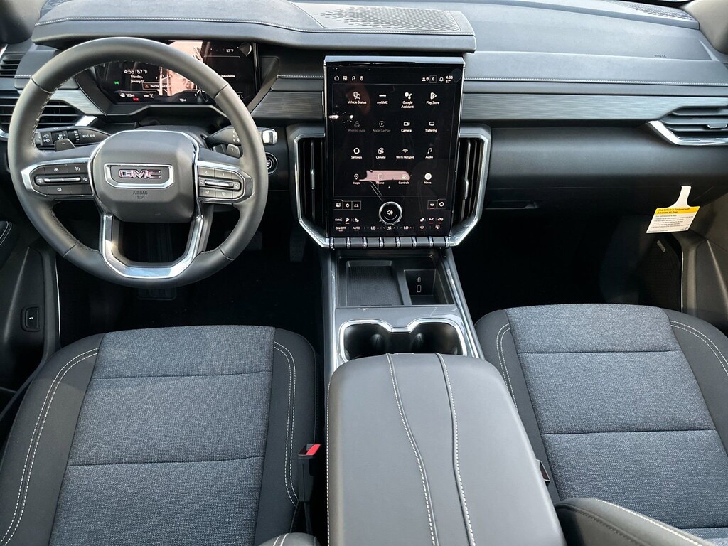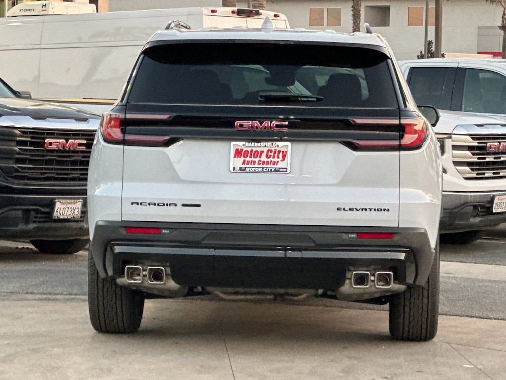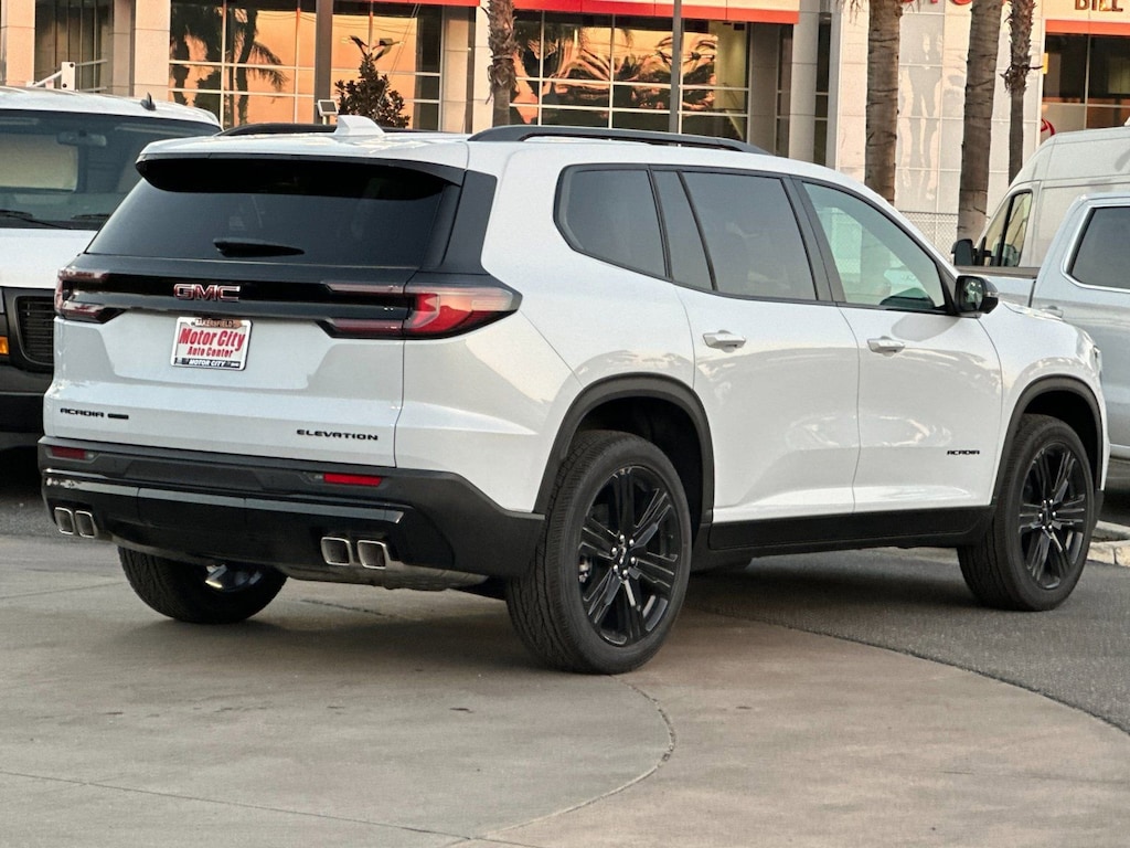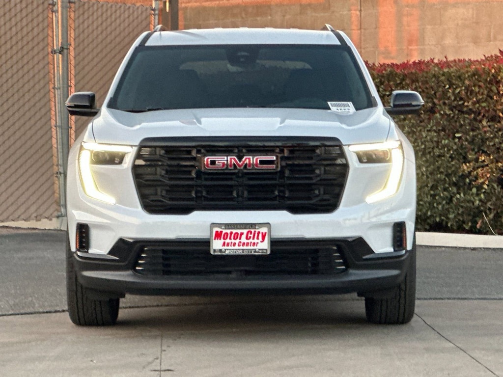 2026 GMC Acadia Elevation Glacier White Tricoat 2.5L DOHCAWD, After Dark Cloth.This vehicle has the following features:Black Edition (Front & Rear Black GMC Emblems (LPO), Gloss Black Roof Rails, High Gloss Black Door Upper Moldings, and Wheels: 22 x 8.5 Gloss Black Aluminum), Preferred Equipment Group 4SD, AWD, After Dark Cloth, 12 Speakers, 18 x 7.5 Aluminum Wheels, 3 Years SiriusXM, 3.49 Final Drive Axle Ratio, 3rd row seats: split-bench, 4-Way Manual Front Passenger Seat Adjuster, 4-Wheel Disc Brakes, 8-Passenger Seating (2-3-3 Seating Configuration), 8-Way Power Driver Seat Adjuster, ABS brakes, Air Conditioning, Alloy wheels, AM/FM radio: SiriusXM with 360L, Apple CarPlay/Android Auto, Auto High-beam Headlights, Automatic temperature control, Bodyside moldings, Bose Premium 12-Speaker System w/Sub-Woofer, Brake assist, Bumpers: body-color, Cloth Seat Trim, Compass, Delay-off headlights, Driver 2-Way Power Lumbar Seat Adjuster, Driver door bin, Driver vanity mirror, Dual front impact airbags, Dual front side impact airbags, Electronic Stability Control, Emergency communication system: OnStar Services capable, Exterior Parking Camera Rear, Four wheel independent suspension, Front anti-roll bar, Front Bucket Seats, Front Center Armrest, Front dual zone A/C, Front fog lights, Front License Plate Bracket, Front reading lights, Fully automatic headlights, Heated door mirrors, Heated Driver & Front Passenger Seats, Heated front seats, Heated steering wheel, Illuminated entry, Leather steering wheel, Low tire pressure warning, Navigation System, Occupant sensing airbag, Outside temperature display, Overhead airbag, Overhead console, Panic alarm, Passenger door bin, Passenger vanity mirror, Performance Suspension, Power door mirrors, Power driver seat, Power Liftgate, Power steering, Power windows, Radio data system, Radio: 15 Premium GMC Infotainment System, Rear air conditioning, Rear anti-roll bar, Rear reading lights, Rear seat center armrest, Rear side impact airbag, Rear window defroster, Rear window wiper, Remote keyless entry, Security system, SiriusXM w/360L, Speed control, Speed-sensing steering, Split folding rear seat, Spoiler, Sport steering wheel, Steering wheel mounted audio controls, Tachometer, Telescoping steering wheel, Tilt steering wheel, Traction control, Trip computer, Turn signal indicator mirrors, Variably intermittent wipers, and Voltmeter.