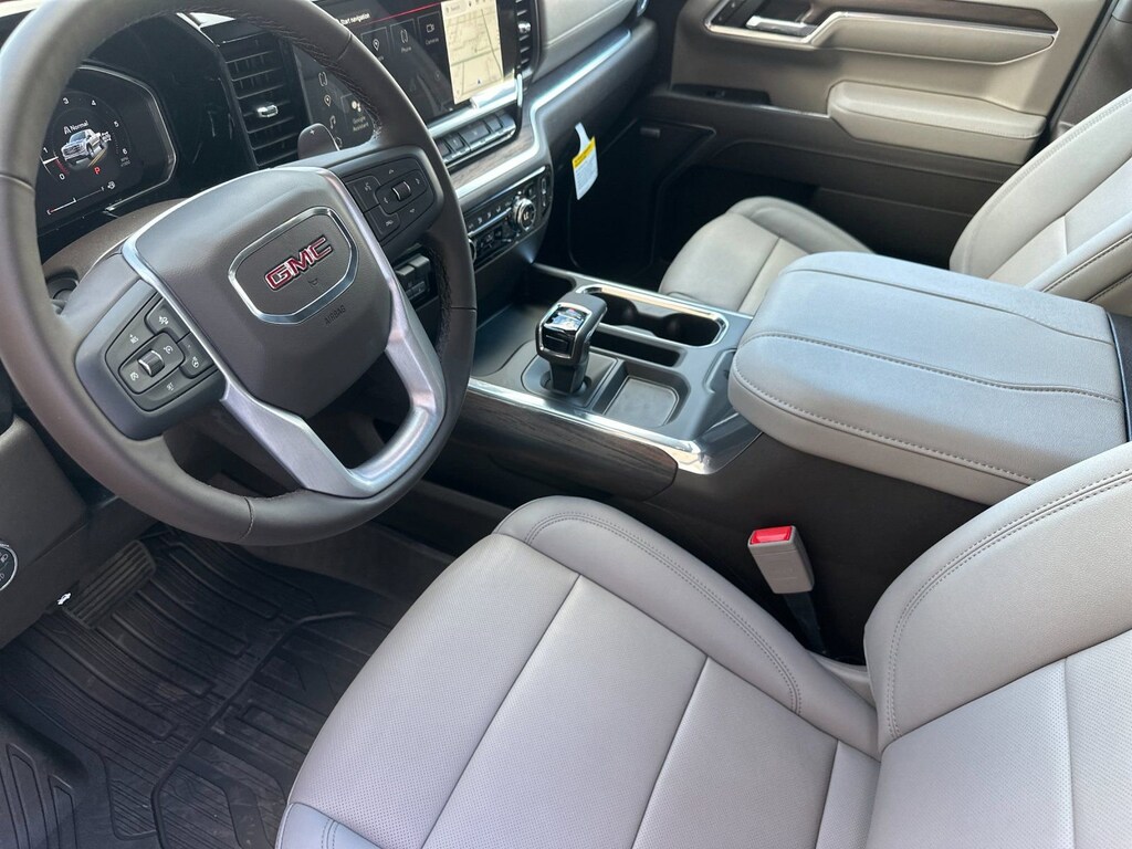 Max Trailering Package (Enhanced Cooling Radiator, Heavier Duty Rear Springs, and Increased RGAWR), ProGrade Trailering System (Hitch View and In-Vehicle Trailering System App), Sierra Safety Plus Package (HD Surround Vision, Rear Cross Traffic Braking, Rear Pedestrian Detection, Safety Alert Seat, Trailer Camera Provisions, Trailer Side Blind Zone Alert, and Ultrasonic Front & Rear Park Assist), SLT Convenience Package (2 Charge/Data USB Ports Inside Center Console, Electronic Precision Shift, Floor-Mounted Center Console, Front Bucket Seats, Power Rake & Telescoping Steering Column, Premium Bose 7-Speaker Sound System, Ventilated Driver & Front Passenger Seats, and Wireless Charging), SLT Preferred Package (Adaptive Cruise Control, Heated 2nd Row Outboard Seats, Power Sliding Rear Window w/Rear Defogger, and Universal Home Remote), SLT Premium Plus Package (Chrome Wheel To Wheel Assist Steps and Spray-On Pickup Bedliner w/GMC Logo), Standard Suspension Package, Trailering Package (Hitch Guidance), 10-Speed Automatic, 4WD, Dk Walnut/Slate Perforate Leather, 10-Way Power Driver Seat Adjuster w/Lumbar, 10-Way Power Passenger Seat Adjuster w/Lumbar, 120-Volt Bed Mounted Power Outlet, 120-Volt Interior Power Outlet, 170 Amp Alternator, 2 Charge/Data USB Ports, 2 Type-C Charge-Only Rear USB Ports, 4-Wheel Disc Brakes, 6 Speakers, 6-Speaker Audio System Feature, ABS brakes, Air Conditioning, All-Weather Floor Liner (LPO), Alloy wheels, AM/FM radio: SiriusXM with 360L, Apple CarPlay/Android Auto, Auto High-beam Headlights, Auto-dimming door mirrors, Auto-dimming Rear-View mirror, Auto-Locking Rear Differential, Automatic Emergency Braking, Automatic temperature control, Auxiliary External Transmission Oil Cooler, Brake assist, Buckle to Drive, Bumpers: chrome, Chrome Header & Chrome Grille Insert Bars, Color-Keyed Carpeting Floor Covering, Compass, Deep-Tinted Glass, Delay-off headlights, Driver door bin, Driver Memory, Driver vanity mirror, Dual front impact airbags, Dual front side impact airbags, Electric Rear-Window Defogger, Electronic Stability Control, Emergency communication system: OnStar, Following Distance Indicator, Forward Collision Alert, Front 40/20/40 Split-Bench Seat, Front anti-roll bar, Front Center Armrest w/Storage, Front dual zone A/C, Front fog lights, Front Frame-Mounted Black Recovery Hooks, Front Pedestrian Braking, Front Rain-Sensing Wipers, Front reading lights, Front wheel independent suspension, Fully automatic headlights, HD Rear Vision Camera, Heated door mirrors, Heated Driver & Front Outboard Passenger Seating, Heated front seats, Heated steering wheel, Illuminated entry, Integrated Trailer Brake Controller, IntelliBeam Automatic High Beam On/Off, Keyless Open & Start, Lane Keep Assist w/Lane Departure Warning, LED Cargo Area Lighting, Low tire pressure warning, Manual Tilt-Wheel & Telescoping Steering Column, Memory seat, Navigation System, Occupant sensing airbag, OnStar Services Capable, Outside temperature display, Overhead airbag, Overhead console, Panic alarm, Passenger door bin, Passenger vanity mirror, Perf Leather-Appointed Front Outboard Seat Trim, Perimeter Lighting, Power Door Locks, Power door mirrors, Power driver seat, Power Front Passenger Windows w/Express Up/Down, Power Front Windows w/Driver Express Up/Down, Power passenger seat, Power Rear Windows w/Express Down, Power steering, Power windows, Push Button Start, Pwr-Adjustable Vertical Trailering Outside Mirrors, Radio data system, Radio: Premium GMC Infotainment Audio System, Rain se Price after all Rebates. Price does not include Tax, Title, Registration, Document Fees. Customer must qualify for rebate. See Dealer for Details. Customer may qualify for additional rebates. $1750 - Buick & GMC Consumer Cash