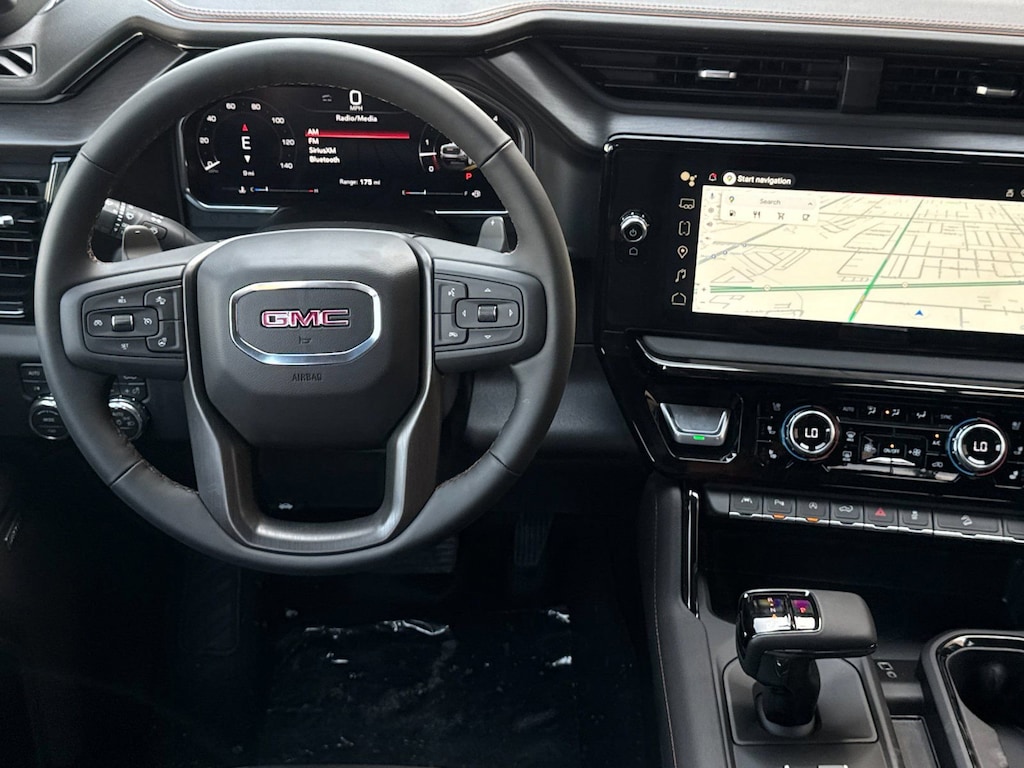 AT4 Preferred Package (Power Sliding Rear Window with Rear Defogger and Universal Home Remote), AT4 Premium Package (Off-Road High Clearance Step), Preferred Equipment Group 4SB (120-Volt Bed Mounted Power Outlet, 120-Volt Interior Power Outlet, 2 Charge/Data USB Ports Inside Center Console, 2 Type-C Charge-Only Rear USB Ports, 2 USB Ports, 220 Amp Alternator, Auto-Locking Rear Differential, Black Chrome Grille Insert Bars, Color-Keyed Carpeting Floor Covering, Deep-Tinted Glass, Electric Rear-Window Defogger, Floor-Mounted Center Console, Front Premium Floor Liners with Removable Carpet Insert, Front Rain-Sensing Wipers, HD Surround Vision, Heated 2nd Row Outboard Seats, Heated Driver and Front Outboard Passenger Seating, Heavy-Duty Air Filter, Hill Descent Control, Hitch View, in-Vehicle Trailering System App, Integrated Trailer Brake Controller, Keyless Open and Start, LED Cargo Area Lighting, Off-Road Suspension, OnStar Services Capable, Perimeter Lighting, Power Door Locks, Power Front Passenger Windows with Express Up/Down, Power Front Windows with Driver Express Up/Down, Power Rake and Telescoping Steering Column, Power Rear Windows with Express Down, Premium Bose 7-Speaker Sound System, Push Button Start, Rear Cross Traffic Braking, Rear Pedestrian Detection, Rear Premium Floor Liners with Removable Carpet Insert, Rear Wheelhouse Liners, Red Recovery Hooks, Remote Vehicle Starter System, SiriusXM with 360L Trial Subscription, Spray-on Pickup Bedliner with GMC Logo, Steering Wheel Audio Controls, Theft Deterrent System (unauthorized Entry), Trailer Camera Provisions, Trailer Side Blind Zone Alert, Ultrasonic Front and Rear Park Assist, Ventilated Driver and Front Passenger Seats, Wheels: 20 x 9 Machined Aluminum, Wi-Fi Hotspot Capable, and Wireless Charging), Technology Package (Bed View Camera, Multicolor 15 Diagonal Head-Up Display, and Rear Camera Mirror), Trailering Package (Hitch Guidance), 10-Speed Automatic, 4WD, Jet Black With Kalahari Accents Leather, 10-Way Power Driver Seat Adjuster with Lumbar, 10-Way Power Passenger Seat Adjuster with Lumbar, 170 Amp Alternator, 3.23 Rear Axle Ratio, 4-Wheel Disc Brakes, 7 Speakers, ABS brakes, Air Conditioning, Alloy wheels, AM/FM radio: SiriusXM with 360L, Apple CarPlay/Android Auto, Auto High-beam Headlights, Auto-dimming door mirrors, Auto-dimming Rear-View mirror, Automatic Emergency Braking, Automatic temperature control, Auxiliary External Transmission Oil Cooler, Block heater, Brake assist, Buckle to Drive, Bumpers: body-color, Compass, Delay-off headlights, Driver door bin, Driver Memory, Driver vanity mirror, Dual Active Exhaust, Dual front impact airbags, Dual front side impact airbags, Electronic Stability Control, Emergency communication system: OnStar, External Engine Oil Cooling, Following Distance Indicator, Forward Collision Alert, Front anti-roll bar, Front Bucket Seats, Front Center Armrest, Front dual zone A/C, Front fog lights, Front License Plate Kit, Front Pedestrian Braking, Front reading lights, Front wheel independent suspension, Fully automatic headlights, Heated door mirrors, Heated front seats, Heated rear seats, Heated steering wheel, Illuminated entry, IntelliBeam Automatic High Beam on/Off, Lane Keep Assist with Lane Departure Warning, Low tire pressure warning, Memory seat, Navigation System, Occupant sensing airbag, Outside temperature display, Overhead airbag, Overhead console, Panic alarm, Passenger door bin, Passenger vanity mirror, Perforated Front Leather Seat Trim, Power door Price after all Rebates. Price does not include Tax, Title, Registration, Document Fees. Customer must qualify for rebate. See Dealer for Details. Customer may qualify for additional rebates. $1750 - Buick & GMC Consumer Cash Program. E