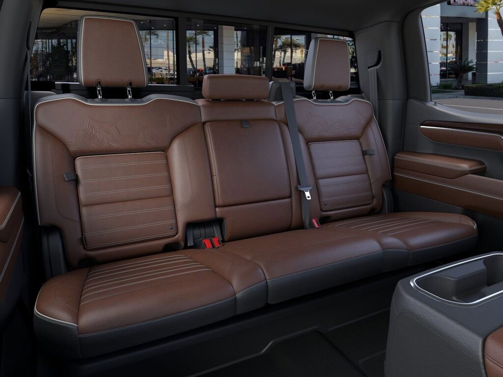Trailering Package (Hitch Guidance), 10-Speed Automatic, 4WD, Alpine Umber Full Grain L Leather, 12 Speakers, 120-Volt Bed Mounted Power Outlet, 120-Volt Interior Power Outlet, 16-Way Power Driver Seat Adjuster with Lumbar, 16-Way Power Passenger Seat Adjuster with Lumbar, 170 Amp Alternator, 2 Charge/Data USB Ports Inside Center Console, 2 Type-C Charge-Only Rear USB Ports, 2 USB Ports, 3 Years SiriusXM, 3.23 Rear Axle Ratio, 4-Wheel Disc Brakes, ABS brakes, Adaptive suspension, Air Conditioning, Alloy wheels, AM/FM radio: SiriusXM with 360L, Apple CarPlay/Android Auto, Auto High-beam Headlights, Auto-dimming door mirrors, Auto-dimming Rear-View mirror, Auto-Locking Rear Differential, Automatic temperature control, Bed View Camera, Bose Premium Series with 12- Speaker System, Brake assist, Buckle to Drive, Bumpers: body-color, Carbon Fiber Composite Bed, Chrome Recovery Hooks, Color-Keyed Carpeting Floor Covering, Compass, Deep-Tinted Glass, Delay-off headlights, Denali Premium Suspension with Adaptive Ride Control, Driver door bin, Driver Memory, Driver vanity mirror, Dual Active Exhaust, Dual front impact airbags, Dual front side impact airbags, Electric Rear-Window Defogger, Electronic Stability Control, Emergency communication system: OnStar, Enhanced Automatic Emergency Braking, Floor-Mounted Center Console, Following Distance Indicator, Forward Collision Alert, Front anti-roll bar, Front Bucket Seats, Front Center Armrest, Front dual zone A/C, Front fog lights, Front Pedestrian Braking, Front Rain-Sensing Wipers, Front reading lights, Front wheel independent suspension, Full Grain Leather Seat Trim, Fully automatic headlights, Garage door transmitter, Genuine wood console insert, Genuine wood dashboard insert, Genuine wood door panel insert, HD Surround Vision, Heads-Up Display, Heated 2nd Row Outboard Seats, Heated door mirrors, Heated Driver and Front Outboard Passenger Seating, Heated front seats, Heated rear seats, Heated steering wheel, Heavy-Duty Air Filter, High Gloss Black Header with Signature Denali Grille, Hill Descent Control, Hitch View, Illuminated entry, in-Vehicle Trailering System App, Integrated Trailer Brake Controller, IntelliBeam Automatic High Beam on/Off, Keyless Open and Start, Leather steering wheel, LED Cargo Area Lighting, Low tire pressure warning, Memory seat, Multicolor 15 Diagonal Head-Up Display, MultiPro Tailgate Audio System by Kicker, Navigation System, Occupant sensing airbag, OnStar Services Capable, Outside temperature display, Overhead airbag, Overhead console, Panic alarm, Passenger door bin, Passenger vanity mirror, Perimeter Lighting, Power Door Locks, Power door mirrors, Power driver seat, Power Front Passenger Windows with Express Up/Down, Power Front Windows with Driver Express Up/Down, Power moonroof, Power passenger seat, Power Rake and Telescoping Steering Column, Power Rear Windows with Express Down, Power Sliding Rear Window with Rear Defogger, Power steering, Power Sunroof, Power windows, Push Button Start, Radio data system, Radio: Premium GMC Infotainment Audio System, Rain sensing wipers, Rear Cross Traffic Braking, Rear Pedestrian Detection, Rear reading lights, Rear seat center armrest, Rear step bumper, Rear Wheelhouse Liners, Rear window defroster, Remote keyless entry, Remote Vehicle Starter System, Safety Alert Seat, Security system, SiriusXM with 360L Trial Subscription, Speed control, Speed-sensing steering, Split folding rear seat, Spray-on Pickup Bedliner with GMC Logo, Steering Wheel Price after all Rebates. Price does not include Tax, Title, Registration, Document Fees. Customer must qualify for rebate. See Dealer for Details. Customer may qualify for additional rebates. $1750 - Buick & GMC Consumer Cash Program.