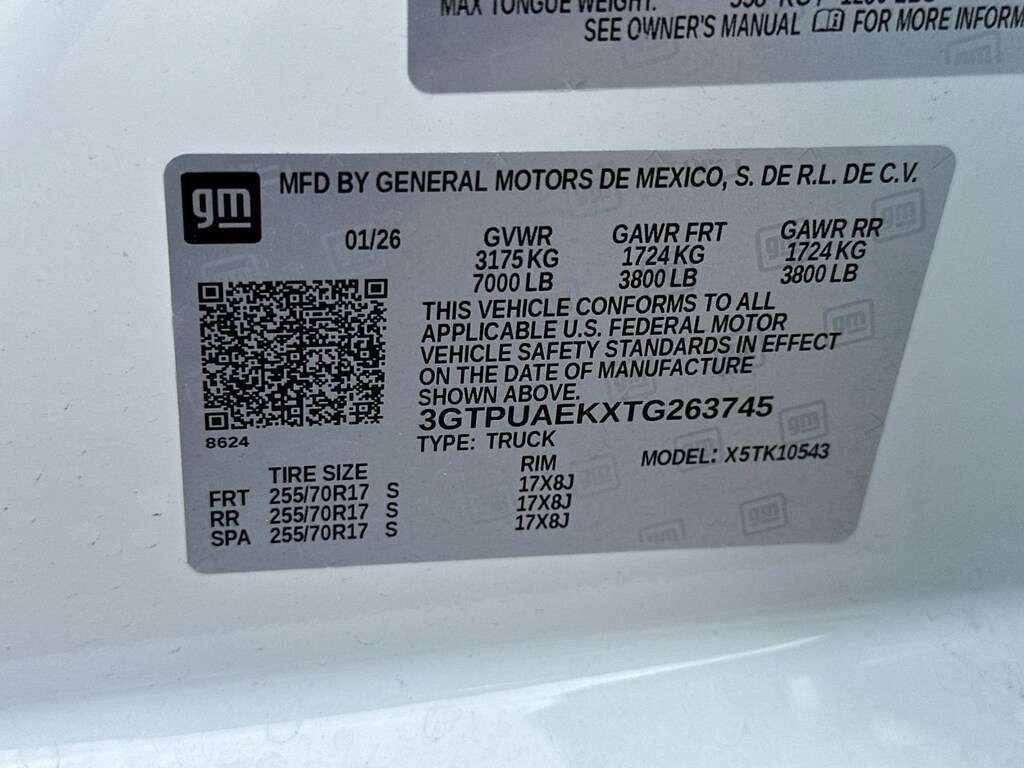 Convenience Package (Deep-Tinted Glass, Electric Rear-Window Defogger, EZ Lift Power Lock and Release Tailgate, Heated Power-Adjustable Outside Mirrors, and LED Cargo Area Lighting), Pro Value Package, Standard Suspension Package, Trailering Package (Hitch Guidance), 8-Speed Automatic, 4WD, Jet Blk Clth Vinyl, 2 Charge/Data USB Ports, 3.42 Rear Axle Ratio, 4-Way Manual Driver Seat Adjuster, 4-Way Manual Passenger Seat Adjuster, 4-Wheel Disc Brakes, 6 Speakers, 6-Speaker Audio System Feature, ABS brakes, Air Conditioning, AM/FM radio, Apple CarPlay/Android Auto, Auto High-beam Headlights, Automatic Emergency Braking, Brake assist, Buckle to Drive, Bumpers: chrome, Chrome Header with Flat Black Grille Insert Bars, Compass, Delay-off headlights, Driver door bin, Dual front impact airbags, Dual front side impact airbags, Electronic Stability Control, Emergency communication system: OnStar, Following Distance Indicator, Forward Collision Alert, Front 40/20/40 Split-Bench Seat, Front anti-roll bar, Front Center Armrest w/Storage, Front Frame-Mounted Black Recovery Hooks, Front Pedestrian Braking, Front reading lights, Front wheel independent suspension, Fully automatic headlights, HD Rear Vision Camera, Illuminated entry, IntelliBeam Automatic High Beam on/Off, Lane Keep Assist with Lane Departure Warning, Low tire pressure warning, Occupant sensing airbag, OnStar Services Capable, Outside temperature display, Overhead airbag, Overhead console, Panic alarm, Passenger door bin, Passenger vanity mirror, Power Door Locks, Power Front Windows with Driver Express Up/Down, Power Front Windows with Passenger Express Down, Power Rear Windows with Express Down, Power steering, Power windows, Push Button Start, Radio data system, Radio: GMC Infotainment Audio System, Rear reading lights, Rear step bumper, Remote Keyless Entry, Remote keyless entry, Solar Absorbing Tinted Glass, Speed control, Speed-sensing steering, Split folding rear seat, Tachometer, Tilt steering wheel, Traction control, Trip computer, Variably intermittent wipers, Vinyl Seat Trim, Voltmeter, Wheels: 17 x 8 Silver Painted Steel, Wi-Fi Hotspot Capable, and Wireless Apple CarPlay/Wireless Android Auto. Price after all Rebates. Price does not include Tax, Title, Registration, Document Fees. Customer must qualify for rebate. See Dealer for Details. Customer may qualify for additional rebates. $1750 - Buick & GMC Consumer Cash Program. Exp. 04/30/2026 $1750 - Buick GMC Bonus Cash. Exp. 04/30/2026