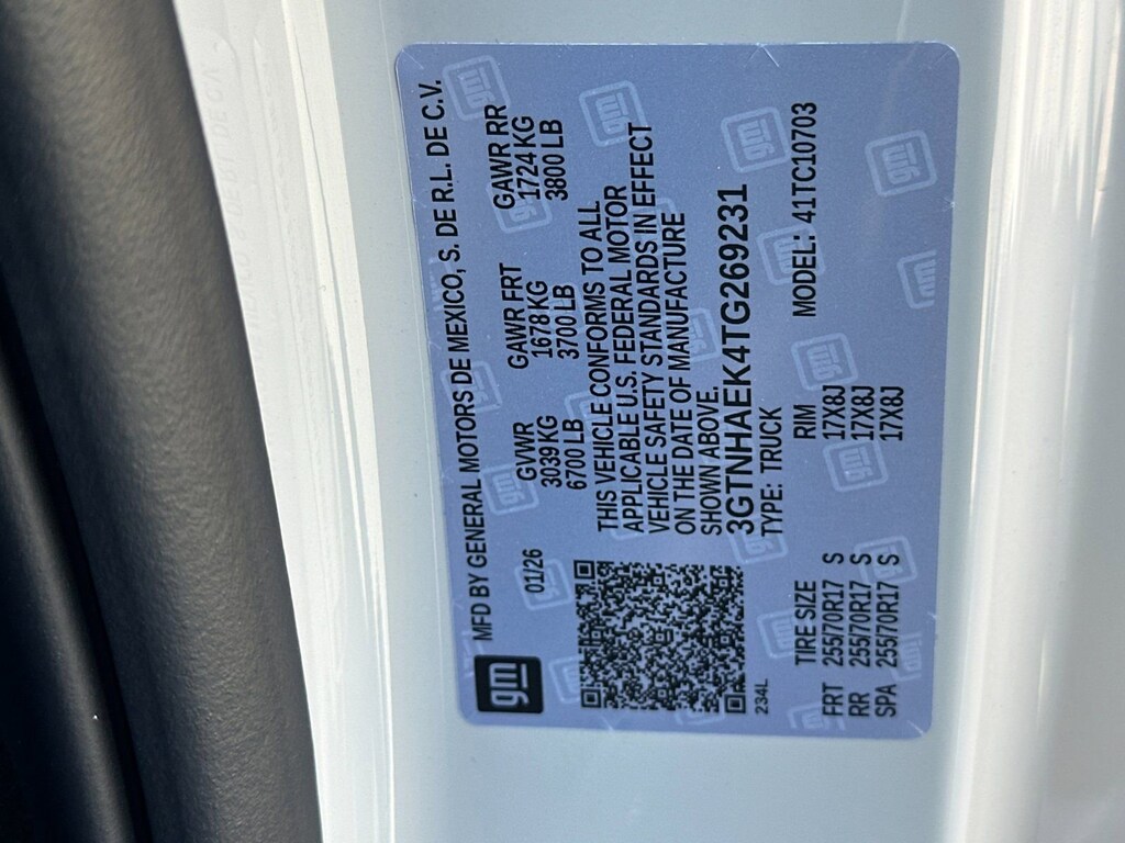 Convenience Package (Deep-Tinted Glass, Electric Rear-Window Defogger, EZ Lift Power Lock and Release Tailgate, and LED Cargo Area Lighting), Pro Value Package, Standard Suspension Package, Trailering Package (Hitch Guidance), 8-Speed Automatic, Jet Blk Clth Vinyl, 2 Charge/Data USB Ports, 2 Speakers, 2-Speaker Audio System Feature, 220 Amp Alternator, 3.42 Rear Axle Ratio, 4-Way Manual Driver Seat Adjuster, 4-Way Manual Passenger Seat Adjuster, 4-Wheel Disc Brakes, ABS brakes, Air Conditioning, AM/FM radio, Apple CarPlay/Android Auto, Auto High-beam Headlights, Automatic Emergency Braking, Brake assist, Buckle to Drive, Bumpers: chrome, Chrome Header with Flat Black Grille Insert Bars, Compass, Delay-off headlights, Driver door bin, Dual front impact airbags, Dual front side impact airbags, Electronic Stability Control, Emergency communication system: OnStar, Following Distance Indicator, Forward Collision Alert, Front 40/20/40 Split-Bench Seat, Front anti-roll bar, Front Center Armrest w/Storage, Front Frame-Mounted Black Recovery Hooks, Front Pedestrian Braking, Front reading lights, Front wheel independent suspension, Fully automatic headlights, HD Rear Vision Camera, Heated door mirrors, Illuminated entry, IntelliBeam Automatic High Beam on/Off, Lane Keep Assist with Lane Departure Warning, Low tire pressure warning, Occupant sensing airbag, OnStar Services Capable, Outside temperature display, Overhead airbag, Overhead console, Panic alarm, Passenger door bin, Passenger vanity mirror, Power Door Locks, Power door mirrors, Power Front Windows with Driver Express Up/Down, Power Front Windows with Passenger Express Down, Power steering, Power windows, Push Button Start, Radio data system, Radio: GMC Infotainment Audio System, Rear reading lights, Rear step bumper, Remote Keyless Entry, Remote keyless entry, Solar Absorbing Tinted Glass, Speed control, Speed-sensing steering, Tachometer, Tilt steering wheel, Traction control, Trip computer, Variably intermittent wipers, Vinyl Seat Trim, Voltmeter, Wheels: 17 x 8 Silver Painted Steel, Wi-Fi Hotspot Capable, and Wireless Apple CarPlay/Wireless Android Auto. Price after all Rebates. Price does not include Tax, Title, Registration, Document Fees. Customer must qualify for rebate. See Dealer for Details. Customer may qualify for additional rebates. $1750 - Buick & GMC Consumer Cash Program. Exp. 04/30/2026 $1750 - Buick GMC Bonus Cash. Exp. 04/30/2026
