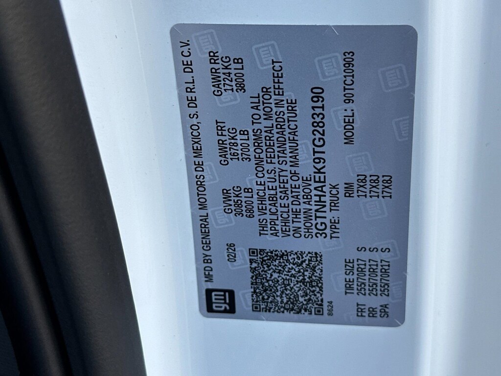 Convenience Package (Deep-Tinted Glass, Electric Rear-Window Defogger, EZ Lift Power Lock and Release Tailgate, and LED Cargo Area Lighting), Pro Value Package, Standard Suspension Package, Trailering Package (Hitch Guidance), 8-Speed Automatic, Jet Blk Clth Vinyl, 2 Charge/Data USB Ports, 2 Speakers, 2-Speaker Audio System Feature, 220 Amp Alternator, 3.42 Rear Axle Ratio, 4-Way Manual Driver Seat Adjuster, 4-Way Manual Passenger Seat Adjuster, 4-Wheel Disc Brakes, ABS brakes, Air Conditioning, AM/FM radio, Apple CarPlay/Android Auto, Auto High-beam Headlights, Automatic Emergency Braking, Brake assist, Buckle to Drive, Bumpers: chrome, Chrome Header with Flat Black Grille Insert Bars, Compass, Delay-off headlights, Driver door bin, Dual front impact airbags, Dual front side impact airbags, Electronic Stability Control, Emergency communication system: OnStar, Following Distance Indicator, Forward Collision Alert, Front 40/20/40 Split-Bench Seat, Front anti-roll bar, Front Center Armrest w/Storage, Front Frame-Mounted Black Recovery Hooks, Front Pedestrian Braking, Front reading lights, Front wheel independent suspension, Fully automatic headlights, HD Rear Vision Camera, Heated door mirrors, Illuminated entry, IntelliBeam Automatic High Beam on/Off, Lane Keep Assist with Lane Departure Warning, Low tire pressure warning, Occupant sensing airbag, OnStar Services Capable, Outside temperature display, Overhead airbag, Overhead console, Panic alarm, Passenger door bin, Passenger vanity mirror, Power Door Locks, Power door mirrors, Power Front Windows with Driver Express Up/Down, Power Front Windows with Passenger Express Down, Power steering, Power windows, Push Button Start, Radio data system, Radio: GMC Infotainment Audio System, Rear reading lights, Rear step bumper, Remote Keyless Entry, Remote keyless entry, Solar Absorbing Tinted Glass, Speed control, Speed-sensing steering, Tachometer, Tilt steering wheel, Traction control, Trip computer, Variably intermittent wipers, Vinyl Seat Trim, Voltmeter, Wheels: 17 x 8 Silver Painted Steel, Wi-Fi Hotspot Capable, and Wireless Apple CarPlay/Wireless Android Auto. Price after all Rebates. Price does not include Tax, Title, Registration, Document Fees. Customer must qualify for rebate. See Dealer for Details. Customer may qualify for additional rebates. $1750 - Buick & GMC Consumer Cash Program. Exp. 04/30/2026 $1750 - Buick GMC Bonus Cash. Exp. 04/30/2026
