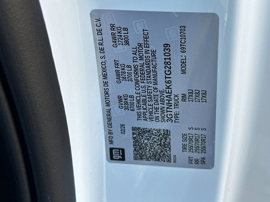 Convenience Package (Deep-Tinted Glass, Electric Rear-Window Defogger, EZ Lift Power Lock and Release Tailgate, and LED Cargo Area Lighting), Pro Value Package, Standard Suspension Package, Trailering Package (Hitch Guidance), 8-Speed Automatic, Jet Blk Clth Vinyl, 2 Charge/Data USB Ports, 2 Speakers, 2-Speaker Audio System Feature, 220 Amp Alternator, 3.42 Rear Axle Ratio, 4-Way Manual Driver Seat Adjuster, 4-Way Manual Passenger Seat Adjuster, 4-Wheel Disc Brakes, ABS brakes, Air Conditioning, AM/FM radio, Apple CarPlay/Android Auto, Auto High-beam Headlights, Automatic Emergency Braking, Brake assist, Buckle to Drive, Bumpers: chrome, Chrome Header with Flat Black Grille Insert Bars, Compass, Delay-off headlights, Driver door bin, Dual front impact airbags, Dual front side impact airbags, Electronic Stability Control, Emergency communication system: OnStar, Following Distance Indicator, Forward Collision Alert, Front 40/20/40 Split-Bench Seat, Front anti-roll bar, Front Center Armrest w/Storage, Front Frame-Mounted Black Recovery Hooks, Front Pedestrian Braking, Front reading lights, Front wheel independent suspension, Fully automatic headlights, HD Rear Vision Camera, Heated door mirrors, Illuminated entry, IntelliBeam Automatic High Beam on/Off, Lane Keep Assist with Lane Departure Warning, Low tire pressure warning, Occupant sensing airbag, OnStar Services Capable, Outside temperature display, Overhead airbag, Overhead console, Panic alarm, Passenger door bin, Passenger vanity mirror, Power Door Locks, Power door mirrors, Power Front Windows with Driver Express Up/Down, Power Front Windows with Passenger Express Down, Power steering, Power windows, Push Button Start, Radio data system, Radio: GMC Infotainment Audio System, Rear reading lights, Rear step bumper, Remote Keyless Entry, Remote keyless entry, Solar Absorbing Tinted Glass, Speed control, Speed-sensing steering, Tachometer, Tilt steering wheel, Traction control, Trip computer, Variably intermittent wipers, Vinyl Seat Trim, Voltmeter, Wheels: 17 x 8 Silver Painted Steel, Wi-Fi Hotspot Capable, and Wireless Apple CarPlay/Wireless Android Auto. Price after all Rebates. Price does not include Tax, Title, Registration, Document Fees. Customer must qualify for rebate. See Dealer for Details. Customer may qualify for additional rebates. $1750 - Buick & GMC Consumer Cash Program. Exp. 04/30/2026 $1750 - Buick GMC Bonus Cash. Exp. 04/30/2026
