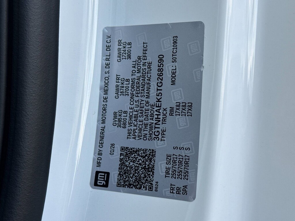 Convenience Package (Deep-Tinted Glass, Electric Rear-Window Defogger, EZ Lift Power Lock and Release Tailgate, and LED Cargo Area Lighting), Pro Value Package, Standard Suspension Package, Trailering Package (Hitch Guidance), 8-Speed Automatic, Jet Blk Clth Vinyl, 2 Charge/Data USB Ports, 2 Speakers, 2-Speaker Audio System Feature, 220 Amp Alternator, 3.42 Rear Axle Ratio, 4-Way Manual Driver Seat Adjuster, 4-Way Manual Passenger Seat Adjuster, 4-Wheel Disc Brakes, ABS brakes, Air Conditioning, AM/FM radio, Apple CarPlay/Android Auto, Auto High-beam Headlights, Automatic Emergency Braking, Brake assist, Buckle to Drive, Bumpers: chrome, Chrome Header with Flat Black Grille Insert Bars, Compass, Delay-off headlights, Driver door bin, Dual front impact airbags, Dual front side impact airbags, Electronic Stability Control, Emergency communication system: OnStar, Following Distance Indicator, Forward Collision Alert, Front 40/20/40 Split-Bench Seat, Front anti-roll bar, Front Center Armrest w/Storage, Front Frame-Mounted Black Recovery Hooks, Front Pedestrian Braking, Front reading lights, Front wheel independent suspension, Fully automatic headlights, HD Rear Vision Camera, Heated door mirrors, Illuminated entry, IntelliBeam Automatic High Beam on/Off, Lane Keep Assist with Lane Departure Warning, Low tire pressure warning, Occupant sensing airbag, OnStar Services Capable, Outside temperature display, Overhead airbag, Overhead console, Panic alarm, Passenger door bin, Passenger vanity mirror, Power Door Locks, Power door mirrors, Power Front Windows with Driver Express Up/Down, Power Front Windows with Passenger Express Down, Power steering, Power windows, Push Button Start, Radio data system, Radio: GMC Infotainment Audio System, Rear reading lights, Rear step bumper, Remote Keyless Entry, Remote keyless entry, Solar Absorbing Tinted Glass, Speed control, Speed-sensing steering, Tachometer, Tilt steering wheel, Traction control, Trip computer, Variably intermittent wipers, Vinyl Seat Trim, Voltmeter, Wheels: 17 x 8 Silver Painted Steel, Wi-Fi Hotspot Capable, and Wireless Apple CarPlay/Wireless Android Auto. Price after all Rebates. Price does not include Tax, Title, Registration, Document Fees. Customer must qualify for rebate. See Dealer for Details. Customer may qualify for additional rebates. $1750 - Buick & GMC Consumer Cash Program. Exp. 04/30/2026 $1750 - Buick GMC Bonus Cash. Exp. 04/30/2026