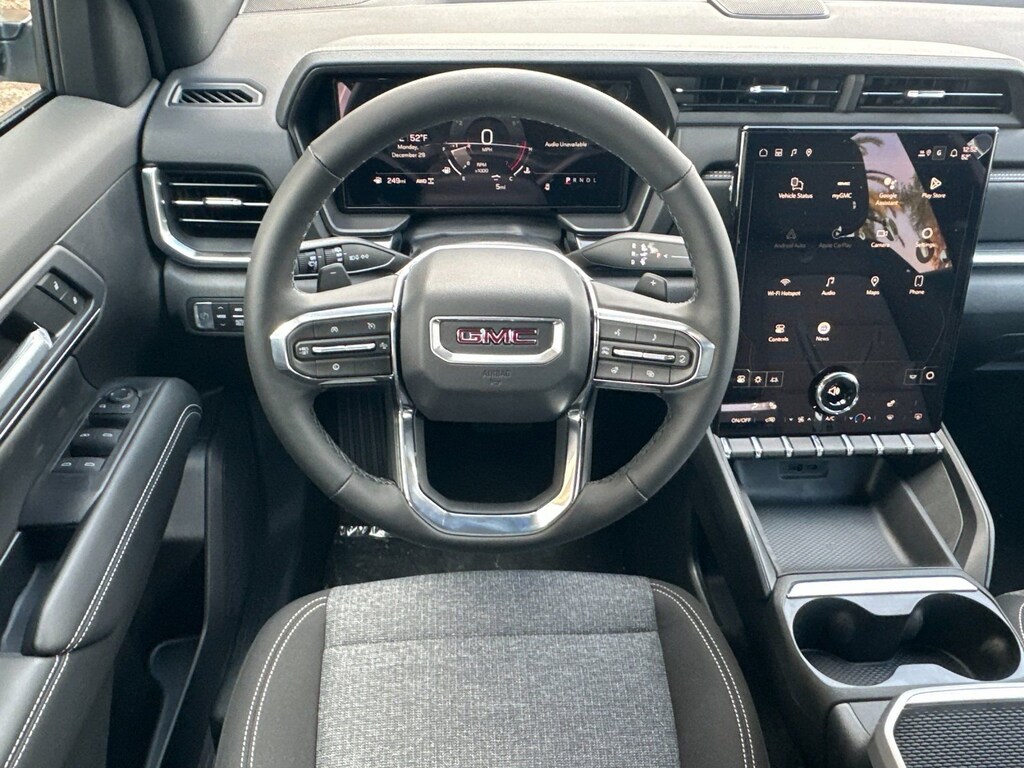 Black Edition (Black Exterior Accents and Black Exterior Badging, Black Mirror Caps, Darkened Grille and C Shaped Surrounding Bezel, and Wheels: 19 Gloss Black Painted Aluminum), AWD, 3 Years SiriusXM, 3.47 Final Drive Axle Ratio, 4-Wheel Disc Brakes, 6 Speakers, 6-Speaker Audio System Feature, ABS brakes, Air Conditioning, Alloy wheels, AM/FM radio: SiriusXM, Auto High-beam Headlights, Automatic temperature control, Brake assist, Brushed Aluminum Roof Rails, Bumpers: body-color, Compass, Delay-off headlights, Driver 6-Way Manual Seat Adjuster, Driver and Front Passenger Heated Seats, Driver door bin, Driver vanity mirror, Dual front impact airbags, Dual front side impact airbags, Electronic Stability Control, Emergency communication system: OnStar and GMC connected services capable, Four wheel independent suspension, Front and Rear Black GMC Emblems, Front anti-roll bar, Front Bucket Seats, Front Center Armrest, Front Passenger 4-Way Manual Seat Adjuster, Front reading lights, Fully automatic headlights, Heated door mirrors, Heated front seats, Heated steering wheel, Illuminated entry, Low tire pressure warning, Navigation System, Occupant sensing airbag, Outside temperature display, Overhead airbag, Panic alarm, Passenger door bin, Passenger vanity mirror, Power door mirrors, Power steering, Power windows, Premium Cloth Seat Trim, Radio data system, Radio: Premium GMC Infotainment System, Rear air conditioning, Rear anti-roll bar, Rear seat center armrest, Rear window defroster, Rear window wiper, Remote keyless entry, Security system, SiriusXM with 360L Trial Subscription, Speed control, Speed-sensing steering, Split folding rear seat, Spoiler, Sport steering wheel, Steering wheel mounted audio controls, Tachometer, Telescoping steering wheel, Tilt steering wheel, Traction control, Trip computer, Variably intermittent wipers, Wheels: 17 Grazen Metallic Machined Aluminum, and Wireless Apple CarPlay/Wireless Android Auto. Price after all Rebates. Price does not include Tax, Title, Registration, Document Fees. Customer must qualify for rebate. See Dealer for Details. Customer may qualify for additional rebates. $1000 - Buick GMC Bonus Cash. Exp. 03/31/2026