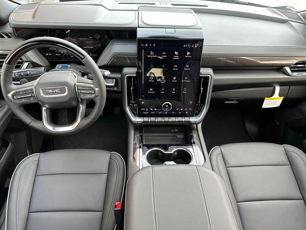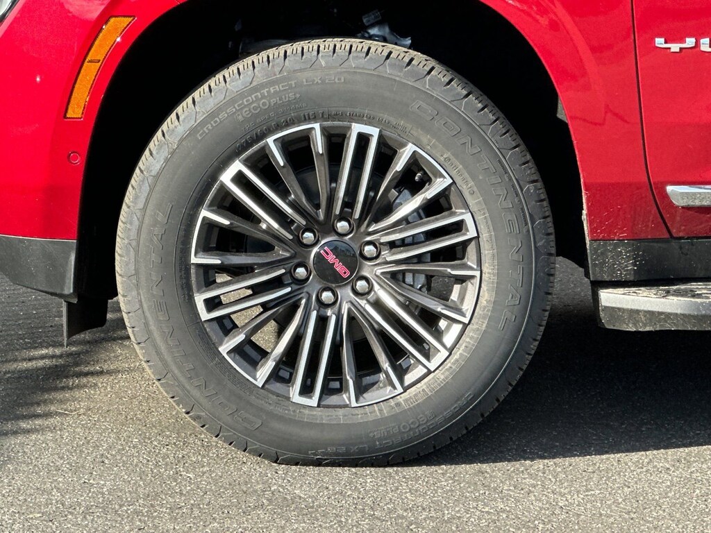 Elevation Premium Package (Dual-Pane Panoramic Power Sunroof and Rear Seat Media System), License Plate Front Mounting Package, Max Trailering Package (Blind Zone Steering Assist with Trailering, Extra Capacity Cooling System, Hill Descent Control, Hitch View, Integrated Trailer Brake Controller, and Smart Trailer Integration Indicator), Preferred Equipment Group 4SA, Technology Package (15 Diagonal Multi-Color Head-Up Display, 4-Way Power Driver Lumbar Seat Adjuster, 4-Way Power Front Passenger Lumbar Seat Adjuster, Inside Rearview Auo-Dimming Rear Camera Mirror, and Perforated Heated and Ventilated Driver and Front Passenger Seats), 4WD, 10 Speakers, 3.23 Rear Axle Ratio, 3rd row seats: split-bench, 4-Wheel Disc Brakes, ABS brakes, Air Conditioning, Alloy wheels, AM/FM radio: SiriusXM with 360L, Apple CarPlay/Android Auto, Audio memory, Auto High-beam Headlights, Auto-dimming door mirrors, Auto-dimming Rear-View mirror, Automatic temperature control, Bodyside moldings, Bose 10-Speaker Surround with CenterPoint, Brake assist, Bumpers: body-color, Compass, CoreTech/Perforated Leather-Appointed Seating, Delay-off headlights, Driver Attention Assist, Driver door bin, Driver vanity mirror, Dual front impact airbags, Dual front side impact airbags, Electronic Stability Control, Emergency communication system: OnStar and GMC connected services capable, Exterior Parking Camera Rear, Floor Console, Four wheel independent suspension, Front anti-roll bar, Front Bucket Seats, Front Center Armrest, Front dual zone A/C, Front fog lights, Front reading lights, Fully automatic headlights, Garage door transmitter, Heated door mirrors, Heated Driver and Front Passenger Seats, Heated front seats, Heated rear seats, Heated steering wheel, Illuminated entry, Low tire pressure warning, Memory seat, Navigation system: GMC Connected Navigation, Occupant sensing airbag, Outside temperature display, Overhead airbag, Overhead console, Panic alarm, Passenger door bin, Passenger vanity mirror, Power door mirrors, Power driver seat, Power Liftgate, Power passenger seat, Power Release 2nd Row Bucket Seats, Power steering, Power windows, Premium Smooth Ride Suspension, Radio: 16.8 Diagonal Premium GMC Infotainment System, Rain sensing wipers, Rear air conditioning, Rear anti-roll bar, Rear reading lights, Rear seat center armrest, Rear window defroster, Rear window wiper, Remote keyless entry, Security system, SiriusXM with 360L, Speed control, Speed-sensing steering, Split folding rear seat, Spoiler, Steering wheel mounted audio controls, Super Cruise, Tachometer, Telescoping steering wheel, Tilt steering wheel, Traction control, Trip computer, Turn signal indicator mirrors, Variably intermittent wipers, Voltmeter, and Wheels: 20 x 9 Machined and Painted.