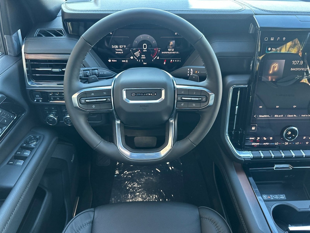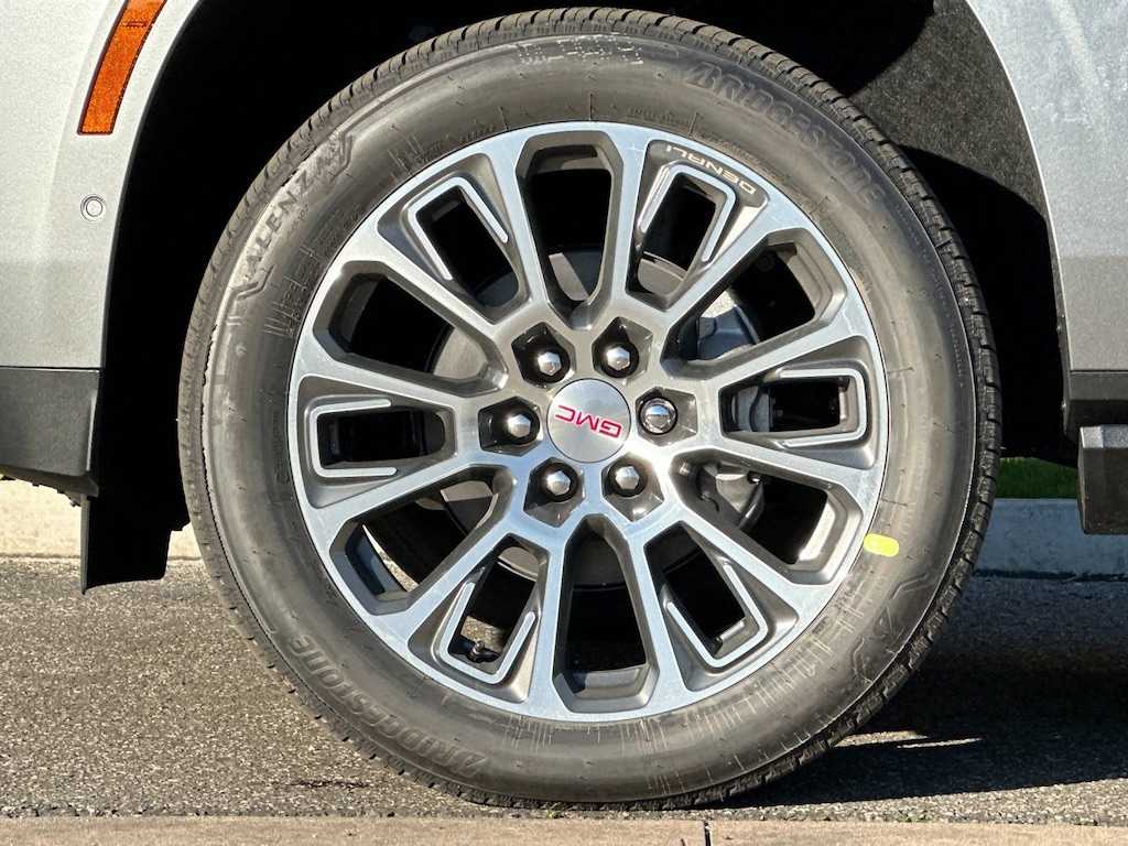 Sun and Power Step Package (Dual-Pane Panoramic Power Sunroof and Power-Retractable Assist Steps), 4WD, 10 Speakers, 15 Diagonal Multi-Color Head-Up Display, 3 Years OnStar One, 3.23 Rear Axle Ratio, 3rd row seats: split-bench, 4-Way Power Driver Lumbar Seat Adjuster, 4-Way Power Front Passenger Lumbar Seat Adjuster, 4-Wheel Disc Brakes, ABS brakes, Adaptive suspension, Air Conditioning, Alloy wheels, AM/FM radio: SiriusXM with 360L, Apple CarPlay/Android Auto, Audio memory, Auto High-beam Headlights, Auto-dimming door mirrors, Auto-dimming Rear-View mirror, Auto-leveling suspension, Automatic temperature control, AutoSense Hands-Free Power Liftgate, Bodyside moldings, Bose 10-Speaker Surround with CenterPoint, Brake assist, Bright Front and Rear Door Sill Plates, Bumpers: body-color, Compass, Delay-off headlights, Driver door bin, Driver vanity mirror, Dual Exhaust System, Dual front impact airbags, Dual front side impact airbags, Electronic Stability Control, Emergency communication system: OnStar and GMC connected services capable, Exterior Parking Camera Rear, Four wheel independent suspension, Front anti-roll bar, Front Bucket Seats, Front Center Armrest, Front dual zone A/C, Front fog lights, Front reading lights, Fully automatic headlights, Galvano Bodyside Moldings, Garage door transmitter, Heads-Up Display, Heated door mirrors, Heated Driver and Front Passenger Seats, Heated front seats, Heated rear seats, Heated steering wheel, Illuminated entry, Low tire pressure warning, Magnetic Ride Control Suspension, Memory seat, Navigation system: GMC Connected Navigation, Occupant sensing airbag, Outside temperature display, Overhead airbag, Overhead console, Panic alarm, Passenger door bin, Passenger vanity mirror, Perforated Heated and Ventilated Driver and Front Passenger Seats, Perforated Leather Seating Surfaces, Power door mirrors, Power driver seat, Power Liftgate, Power passenger seat, Power Release 2nd Row Bucket Seats, Power steering, Power Tilt and Telescopic Steering Column, Power windows, Radio: 16.8 Diagonal Premium GMC Infotainment System, Rain sensing wipers, Rear air conditioning, Rear anti-roll bar, Rear reading lights, Rear window defroster, Rear window wiper, Remote keyless entry, Security system, SiriusXM with 360L, Speed control, Speed-sensing steering, Split folding rear seat, Spoiler, Steering wheel memory, Steering wheel mounted audio controls, Tachometer, Telescoping steering wheel, Tilt steering wheel, Traction control, Trip computer, Turn signal indicator mirrors, Variably intermittent wipers, Ventilated front seats, Voltmeter, Wheel Locks (set of 4), Wheels: 20 x 9 6-Spoke Polished Aluminum, and Wheels: 22 x 9 Ultra-Bright Machined.