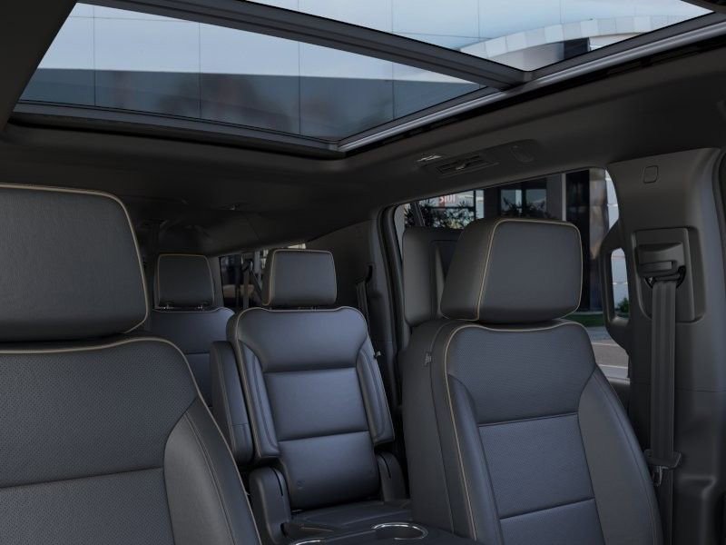Elevation Premium Package (Dual-Pane Panoramic Power Sunroof and Rear Seat Media System), Max Trailering Package (Blind Zone Steering Assist with Trailering, Extra Capacity Cooling System, Hitch View, Integrated Trailer Brake Controller, and Smart Trailer Integration Indicator), Technology Package (15 Diagonal Multi-Color Head-Up Display, 4-Way Power Driver Lumbar Seat Adjuster, 4-Way Power Front Passenger Lumbar Seat Adjuster, Inside Rearview Auo-Dimming Rear Camera Mirror, and Perforated Heated and Ventilated Driver and Front Passenger Seats), 10 Speakers, 3.23 Rear Axle Ratio, 3rd row seats: split-bench, 4-Wheel Disc Brakes, ABS brakes, Air Conditioning, Alloy wheels, AM/FM radio: SiriusXM with 360L, Apple CarPlay/Android Auto, Audio memory, Auto High-beam Headlights, Auto-dimming door mirrors, Auto-dimming Rear-View mirror, Automatic temperature control, Bodyside moldings, Bose 10-Speaker Surround with CenterPoint, Brake assist, Bumpers: body-color, Compass, CoreTech/Perforated Leather-Appointed Seating, Delay-off headlights, Driver door bin, Driver vanity mirror, Dual front impact airbags, Dual front side impact airbags, Electronic Stability Control, Emergency communication system: OnStar and GMC connected services capable, Engine Block Heater, Exterior Parking Camera Rear, Floor Console, Four wheel independent suspension, Front anti-roll bar, Front Bucket Seats, Front Center Armrest, Front dual zone A/C, Front fog lights, Front reading lights, Fully automatic headlights, Garage door transmitter, Heated door mirrors, Heated Driver and Front Passenger Seats, Heated front seats, Heated rear seats, Heated steering wheel, Illuminated entry, Low tire pressure warning, Memory seat, Navigation system: GMC Connected Navigation, Occupant sensing airbag, Outside temperature display, Overhead airbag, Overhead console, Panic alarm, Passenger door bin, Passenger vanity mirror, Power door mirrors, Power driver seat, Power Liftgate, Power passenger seat, Power Release 2nd Row Bucket Seats, Power steering, Power windows, Premium Smooth Ride Suspension, Radio: 16.8 Diagonal Premium GMC Infotainment System, Rain sensing wipers, Rear air conditioning, Rear anti-roll bar, Rear reading lights, Rear seat center armrest, Rear window defroster, Rear window wiper, Remote keyless entry, Security system, SiriusXM with 360L, Speed control, Speed-sensing steering, Split folding rear seat, Spoiler, Steering wheel mounted audio controls, Tachometer, Telescoping steering wheel, Tilt steering wheel, Traction control, Trip computer, Turn signal indicator mirrors, Variably intermittent wipers, Voltmeter, and Wheels: 20 x 9 Machined and Painted.