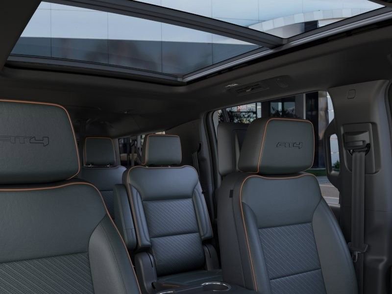 Advanced Security Package (Glass Breakage Sensor, Theft-Deterrent Alarm System, Vehicle Inclination Sensor, and Vehicle Interior Movement Sensor), AT4 Premium Package (Dual-Pane Panoramic Power Sunroof and Power-Retractable Assist Steps), AT4 Premium Plus Package (Rear Seat Media System), Enhanced Trailering Technology Package (Trailer Camera Provisions, Trailering Assist Guidelines, and Wired Auxiliary Trailer Camera), Max Trailering Package (Blind Zone Steering Assist with Trailering, Extra Capacity Cooling System, Hitch View, Integrated Trailer Brake Controller, and Smart Trailer Integration Indicator), Premium Capability Package with Active Response 4WD (Air Ride Adaptive Suspension and Electronic Limited Slip Differential (ELSD)), Technology Package (15 Diagonal Multi-Color Head-Up Display, Floor Console, Inside Rearview Auo-Dimming Rear Camera Mirror, and Power Release 2nd Row Bucket Seats), 4WD, 10 Speakers, 3.23 Rear Axle Ratio, 3rd row seats: split-bench, 4-Way Power Driver Lumbar Seat Adjuster, 4-Way Power Front Passenger Lumbar Seat Adjuster, 4-Wheel Disc Brakes, ABS brakes, Adaptive suspension, Air Conditioning, Alloy wheels, AM/FM radio: SiriusXM with 360L, Apple CarPlay/Android Auto, Audio memory, Auto High-beam Headlights, Auto-dimming door mirrors, Auto-dimming Rear-View mirror, Auto-leveling suspension, Automatic temperature control, AutoSense Hands-Free Power Liftgate, Black Roof-Mounted Luggage Rack Side Rails, Body-Color Door Handles, Bose 10-Speaker Surround with CenterPoint, Brake assist, Bright Front and Rear Door Sill Plates, Bumpers: body-color, Compass, Delay-off headlights, Driver door bin, Driver vanity mirror, Dual Exhaust System, Dual front impact airbags, Dual front side impact airbags, Electronic Stability Control, Emergency communication system: OnStar and GMC connected services capable, Engine Block Heater, Exterior Parking Camera Rear, Four wheel independent suspension, Front anti-roll bar, Front Bucket Seats, Front Center Armrest, Front dual zone A/C, Front fog lights, Front High-Approach Angle Fascia, Front reading lights, Fully automatic headlights, Garage door transmitter, Heated door mirrors, Heated Driver and Front Passenger Seats, Heated front seats, Heated rear seats, Heated steering wheel, Heavy-Duty Air Filter, Hill Descent Control, Illuminated entry, Low tire pressure warning, Magnetic Ride Control Suspension, Memory seat, Navigation system: GMC Connected Navigation, Occupant sensing airbag, Outside temperature display, Overhead airbag, Overhead console, Panic alarm, Passenger door bin, Passenger vanity mirror, Perforated Heated and Ventilated Driver and Front Passenger Seats, Perforated Leather Seating Surfaces, Power door mirrors, Power driver seat, Power Liftgate, Power passenger seat, Power steering, Power Tilt and Telescopic Steering Column, Power windows, Radio: 16.8 Diagonal Premium GMC Infotainment System, Rain sensing wipers, Rear air conditioning, Rear anti-roll bar, Rear reading lights, Rear seat center armrest, Rear window defroster, Rear window wiper, Red Horizontal-Mounted Recovery Hooks, Remote keyless entry, Security system, SiriusXM with 360L, Speed control, Speed-sensing steering, Split folding rear seat, Spoiler, Steering wheel memory, Steering wheel mounted audio controls, Tachometer, Telescoping steering wheel, Tilt steering wheel, Traction control, Trip computer, Turn signal indicator mirrors, Variably intermittent wipers, Ventilated front seats, Voltmeter, and Wheels: 20 x 9 Machined and Painted.