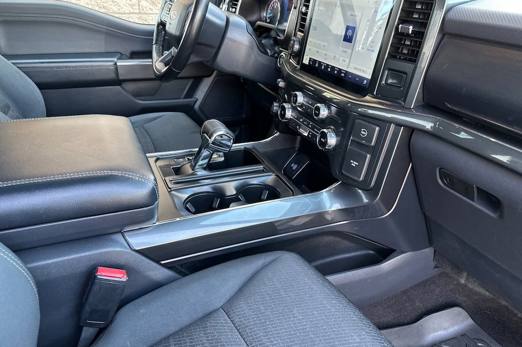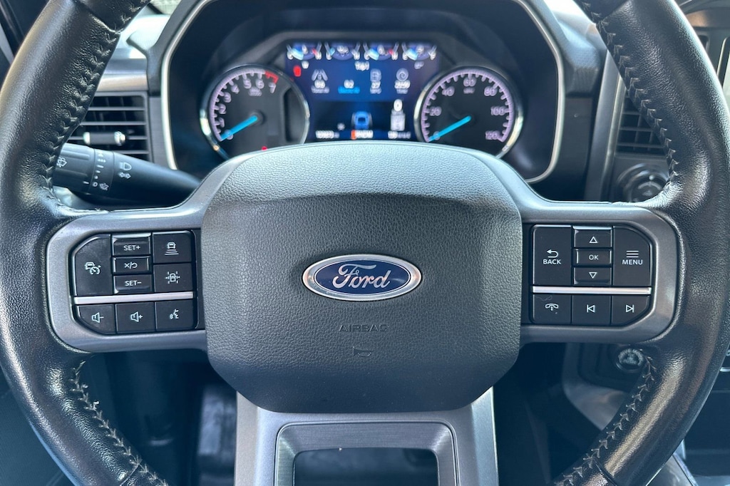 Elevate your driving experience with the F-150's advanced technology and convenience features. Enjoy the comfort of Dual Zone Electronic Automatic Temperature Control, Intelligent Access with Push Button Start, and a Leather-Wrapped Steering Wheel. Stay connected with the SYNC 4 infotainment system, complete with a 12-inch LCD capacitive touchscreen, wireless phone connectivity, and cloud-based navigation.