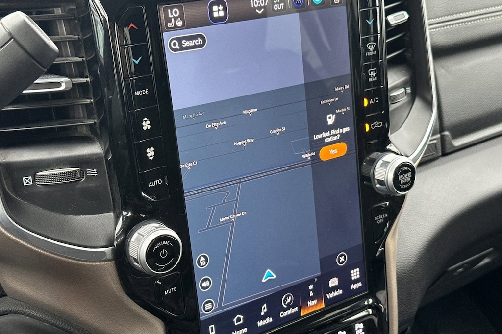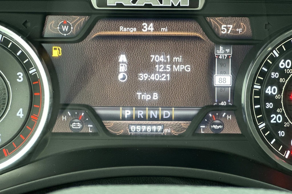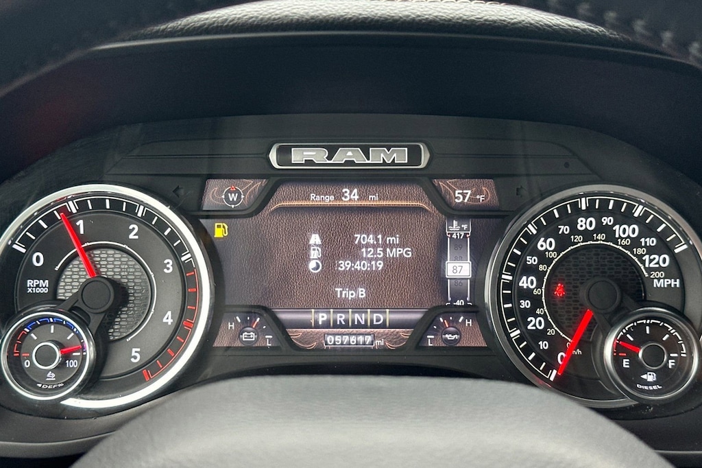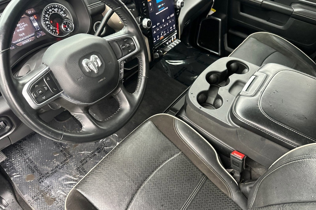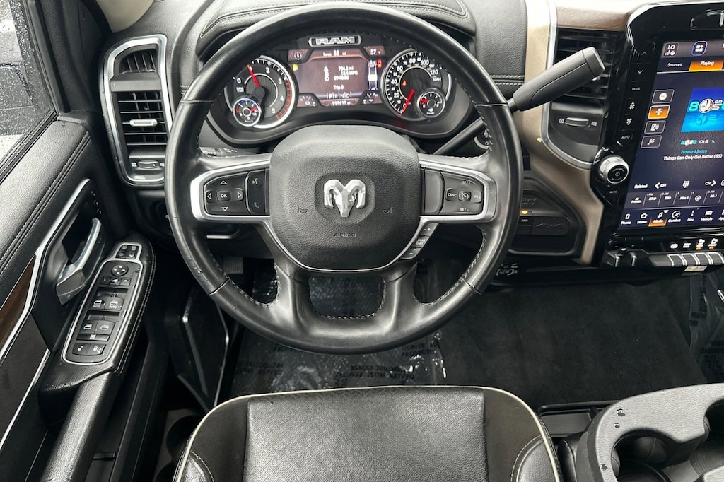 But this Ram 2500 isn't just about brute force; it's also about premium comfort and convenience. The Laramie trim level pampers you with features like a 12-inch touchscreen display, GPS navigation, and a premium audio system with SiriusXM. The power-adjustable pedals and heated steering wheel ensure you'll always find the perfect driving position, while the blind spot monitoring and cross-path detection systems help keep you safe on the road.