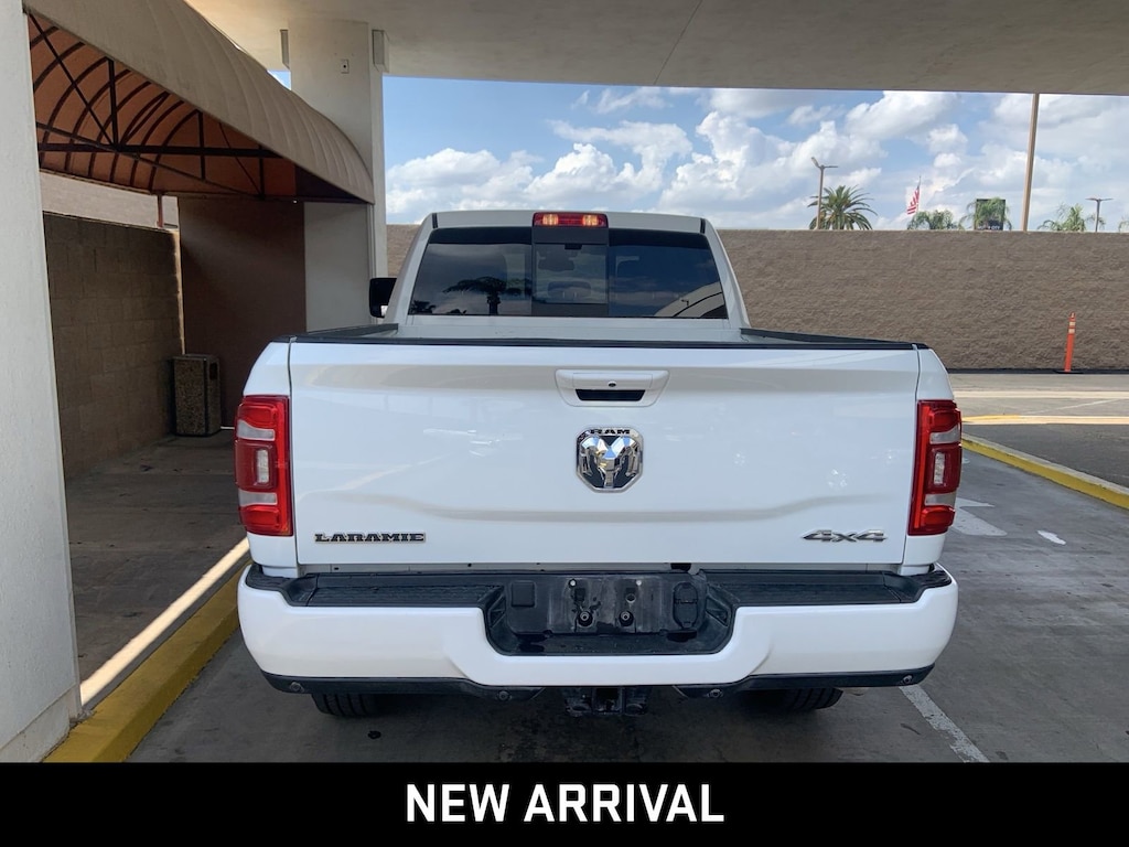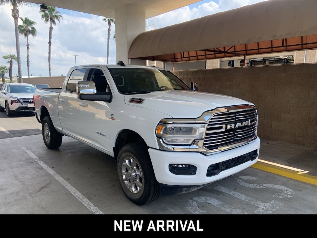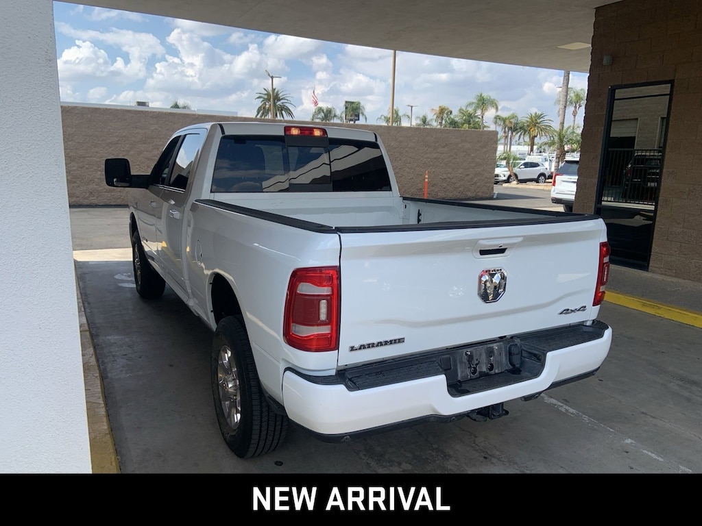 2500 Laramie, 4D Crew Cab, Cummins 6.7L I6 Turbodiesel, 6-Speed Automatic, 4WD, Bright White Clearcoat, Black Leather, 12 Touchscreen Display, 2nd Row In Floor Storage Bins, 4G LTE Wi-Fi Hot Spot, Alexa Built-In, Alloy wheels, Apple CarPlay, Apple CarPlay/Android Auto, Auto Adjust In Reverse Exterior Mirrors, Auto Dim Exterior Mirror, Auto High Beam Headlamp Control, Auto Power-Folding Mirrors, Auto-Dimming Exterior Passenger Mirror, Blind Spot & Cross Path Detection, Chrome Exterior Mirrors, Connected Travel & Traffic Services, Connectivity - US/Canada, Disassociated Touchscreen Display, Exterior Mirrors Courtesy Lamps, Exterior Mirrors w/Heating Element, Exterior Mirrors w/Memory, Exterior Mirrors w/Supplemental Signals, Foam Bottle Insert (Door Trim Panel), For Details, Visit DriveUconnect.com, For More Info, Call 800-643-2112, Forward & Reverse Utility Lights, Front LED Fog Lamps, Global Telematics Box Module (TBM), Google Android Auto, GPS Antenna Input, GPS Navigation, HD Radio, Integrated Voice Command w/Bluetooth, Laramie Level 1 Equipment Group, LED Reflector Headlamps, LED Tail Lamps, Mirror Running Lights, Off-Road Information Pages, ParkSense Front/Rear Park Assist System, ParkView Rear Back-Up Camera, Power Adjust 8-Way Driver Seat, Power Adjust 8-Way Front Passenger Seat, Power Adjust Mirrors, Power Adjustable Convex Aux Mirrors, Power Adjustable Pedals w/Memory, Power Heated Fold Telescopic Mirrors w/Memory, Power Telescoping Mirrors, Quick Order Package 2HH Laramie, Radio: Uconnect 5 Nav w/12.0 Display, Rain Sensitive Windshield Wipers, Rear Power Sliding Window, Rear Window Defroster, Remote keyless entry, Remote Tailgate Release, Security system, Selectable Tire Fill Alert, SiriusXM Radio Service, SiriusXM w/360L, Speed control, Steering wheel mounted audio controls, Trailer Tow Pages.